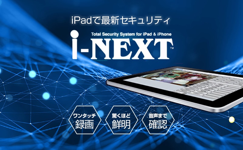 その場にいなくても、それ以上効果を! マネージメントの新しいカタチとして開発された「i-NEXT」は、遠隔(外出先)から防犯セキュリティ、店舗マネージメント、生産ライン管理、教育ツールと様々な場面で活用できます。